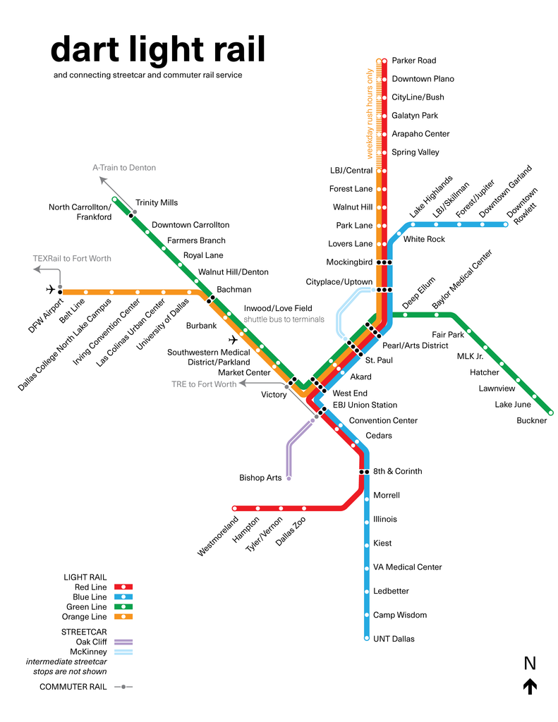 Dallas DART system and local streetcar service, 2022